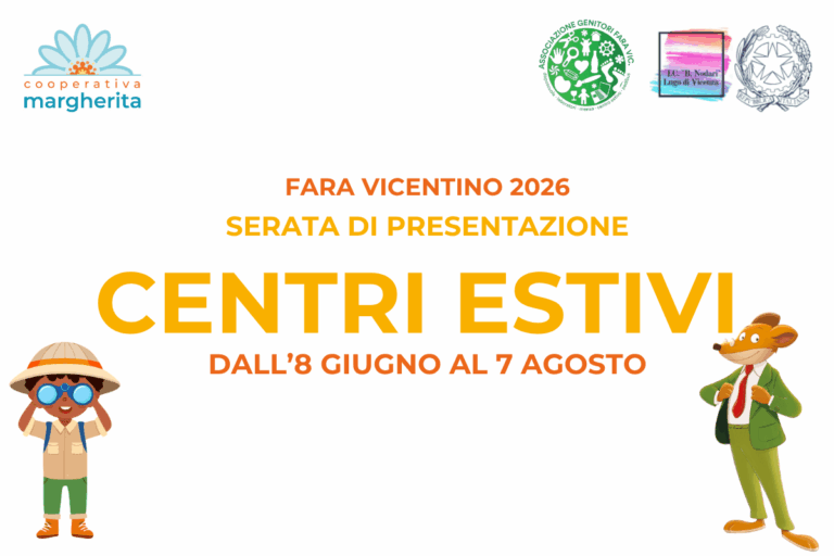 L’Associazione Genitori di Fara Vicentino invita famiglie e cittadinanza alla serata di presentazione dei centri estivi 2026, un momento informativo dedicato alla scoperta delle attività