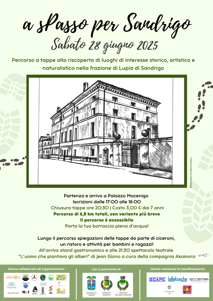 L’iniziativa, patrocinata dalla Provincia di Vicenza, dai Comuni di Sandrigo e Bolzano Vicentino, è promossa da un gruppo di associazioni locali e volontari, coordinati dall’associazione Il Girasole Odv e Cooperativa Margherita, con l’obiettivo di far riscoprire i luoghi più suggestivi del territorio in modo lento e consapevole.