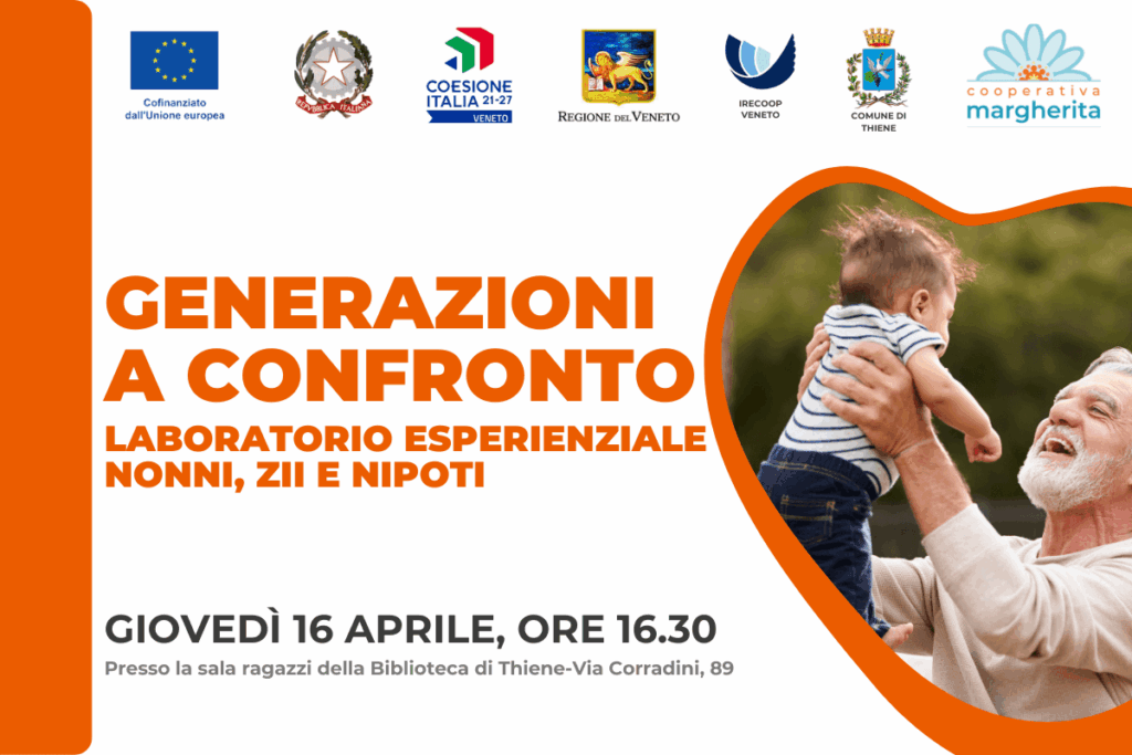 Un pomeriggio dedicato alla relazione tra generazioni, alla creatività e alla condivisione: “Generazioni a confronto” è il laboratorio esperienziale pensato per coinvolgere bambini da 0 a 3 anni insieme a nonni, zii e familiari. L’iniziativa è promossa da Cooperativa Margherita, in collaborazione con Irecoop Veneto e il Comune di Thiene, nell’ambito del progetto regionale dedicato […]