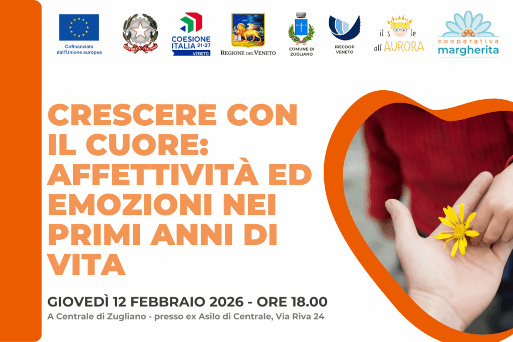 Cooperativa Margherita, in collaborazione con Il Sole all’Aurora, organizza un incontro dedicato ai genitori dei bambini della scuola dell’infanzia, condotto dalla dott.ssa Martina Cumerlato, psicologa. L’iniziativa offre un momento per fermarsi, ascoltare e condividere riflessioni sul mondo dell’affettività e delle emozioni. Sarà un’occasione di dialogo e confronto per comprendere meglio i bisogni emotivi dei bambini […]