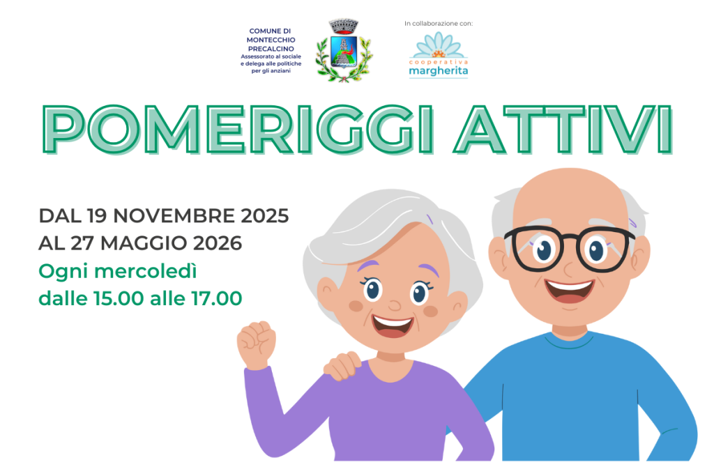 Dal 19 novembre 2025 al 27 maggio 2026, ogni mercoledì dalle 15.00 alle 17.00, il Centro Palazzon di Montecchio Precalcino (sopra l’aula studio, in via Murazzo 10) apre le porte agli over 60 con una proposta ricca, varia e completamente gratuita: Pomeriggi Attivi, un percorso pensato per vivere il mercoledì in modo nuovo, stimolante e […]