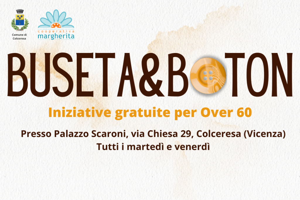 Torna Buseta & Boton nel 2024 con iniziative gratuite per gli over 60 organizzate da Cooperativa Margherita con il patrocinio del Comune di Colceresa. Presso Palazzo Scaroni in via Chiesa 29, Colceresa (VI) si terranno dei laboratori ogni mercoledì e il gruppo Buseta & Boton ogni venerdì: iniziative ideate per creare occasioni per stare assieme […]