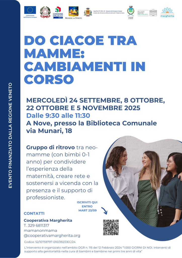 Prendersi cura di un neonato significa affrontare ogni giorno nuove sfide, scoprire emozioni inaspettate e sperimentare profondi cambiamenti. Per questo nasce “Do Ciacoe tra mamme: cambiamenti in corso”, un gruppo di incontro e confronto dedicato alle neo-mamme con bambini da 0 a 1 anno.