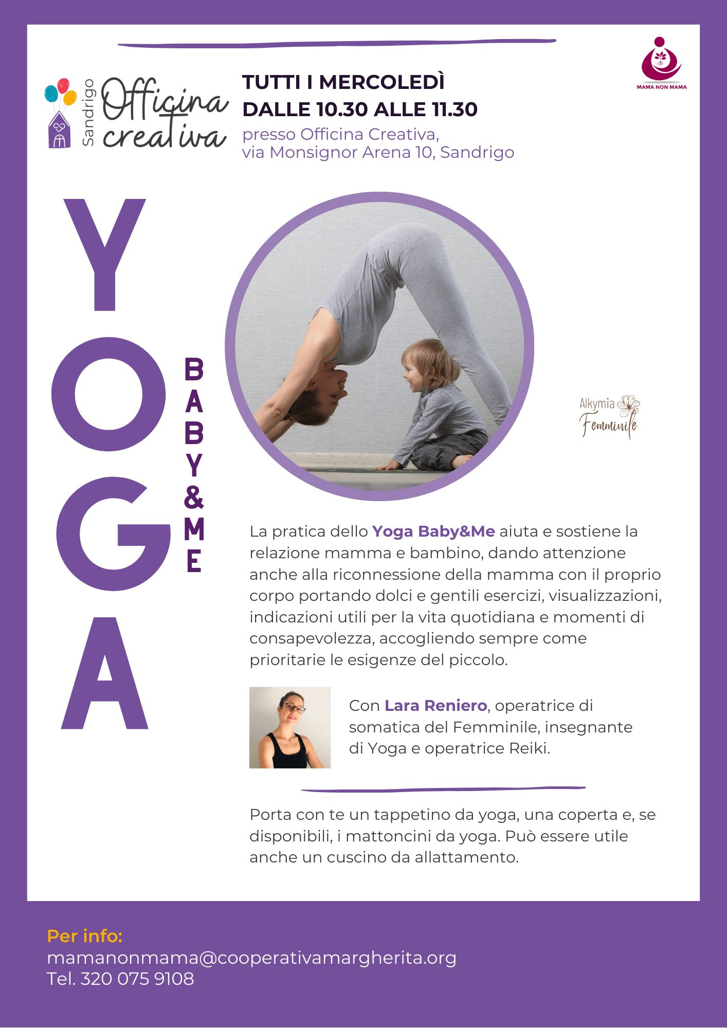 Ogni mercoledì dalle 10.30 alle 11.30, presso Officina Creativa, via Monsignor Arena 10, Sandrigo, parte il nuovo percorso di Yoga Baby&Me.