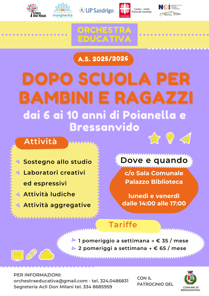 Un servizio pensato per accompagnare i più giovani nello studio e nella crescita personale, con attività educative e creative in un ambiente accogliente e stimolante.